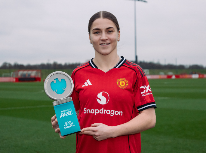 Strikes from Chelsea’s Sandy Baltimore (v West Ham United), Aston Villa’s Hanson (v Brighton), Arsenal’s Mariona Caldentey (v Chelsea), Manchester United’s Julia Zigiotti (v Aston Villa), West Ham United’s Verena Hanshaw and Shekiera Martinez (both v Leicester City) and London City Lionesses’ Freya Godfrey (v Manchester City) were also in contention.