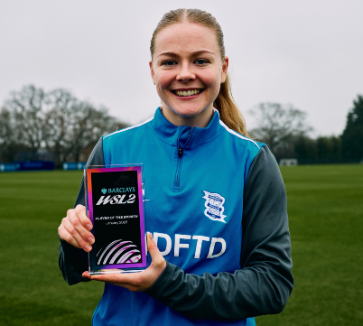 Firstly, Birmingham City’s Lily Crosthwaite has been named as Player of the Month after emerging victorious in the combined public and panel vote.