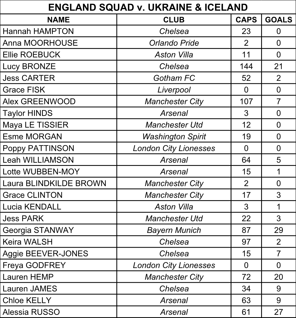 Alex Greenwood, Leah Williamson and Lauren James are back in the fold after being absent from the last squad in November. Niamh Charles, Missy Bo Kearns, Ella Toone and Beth Mead were all unavailable for selection due to injury.