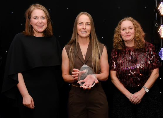 Hibernian’s Joelle Murray presented by WF’s CEO Aileen Campbell and Chair, Vivienne MacLaren;